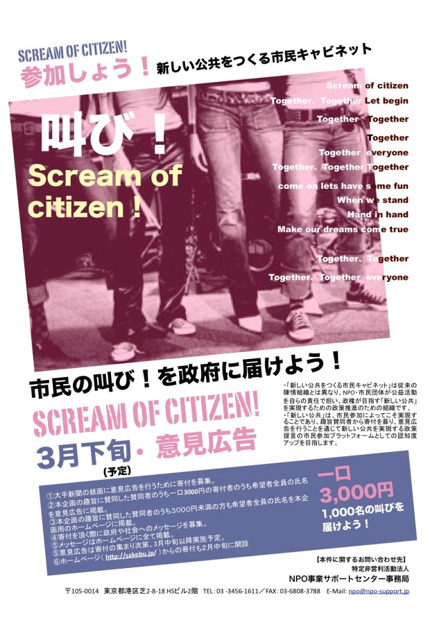 2月上旬にはWEB上からも寄付と署名を受付けますので、今しばらくお待ちください。3000円以上寄付をしてくださった方のお名前は、大手新聞に行う意見広告に掲載させていただきます。