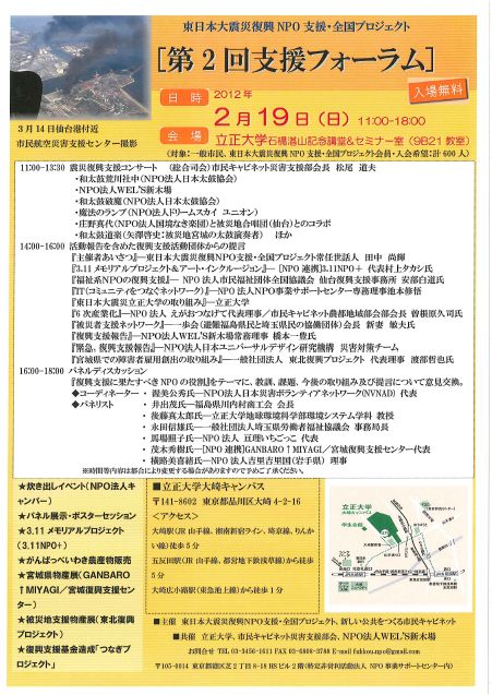 2/19東日本大震災復興NPO支援・全国プロジェクト「第2回支援フォーラム」