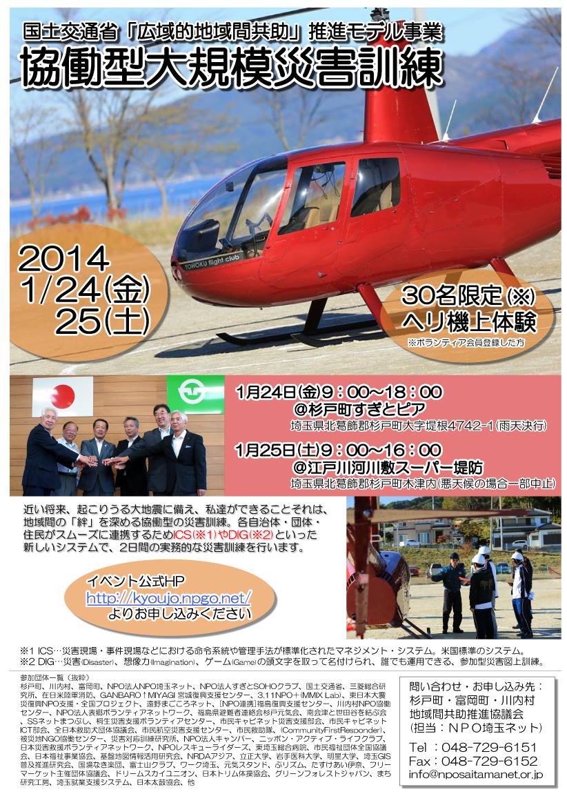 震災から2年を経た今、自分と家族の身を守り、地域社会または企業の一員として災害時に何が出来るか真剣に考え行動に移すことを一緒に始めませんか。