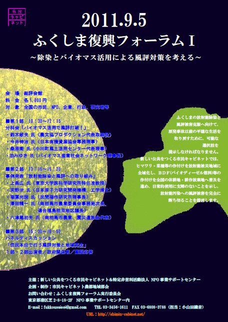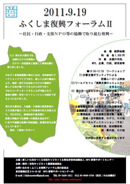 9月5日・19日「ふくしま復興フォーラム」開催します!
