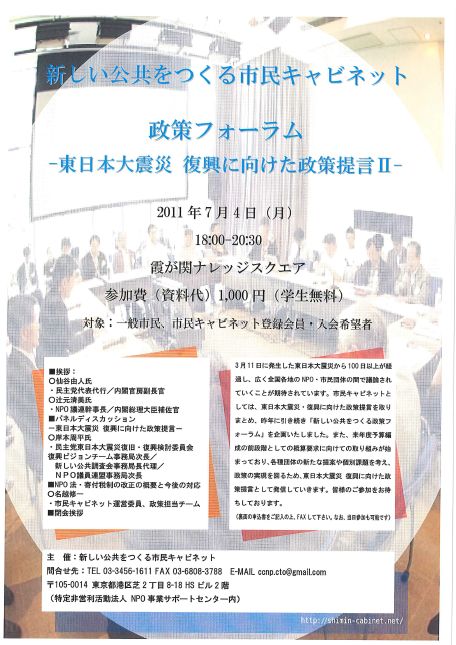 ●主催:新しい公共をつくる市民キャビネット/NPO法人NPO事業サポートセンター